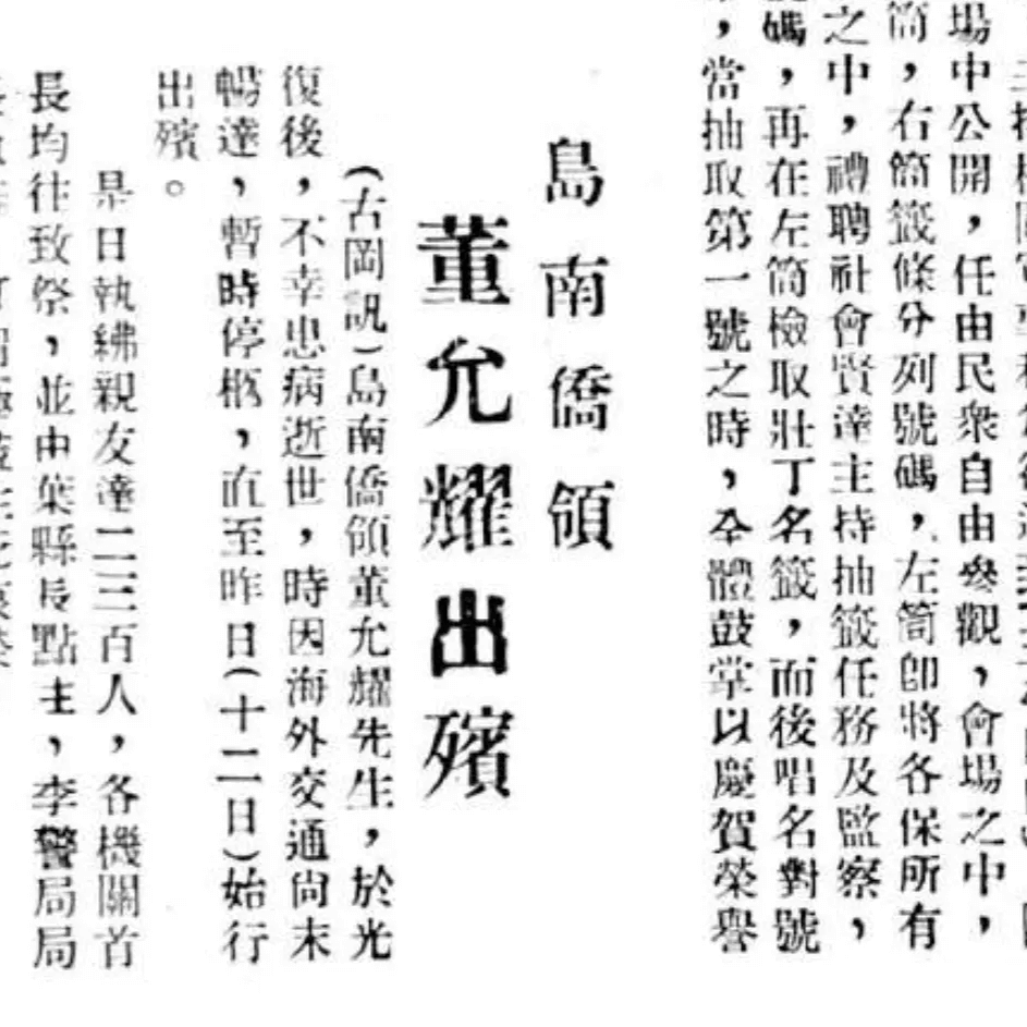 1937年二戰爆發,日軍佔領金門,許多鄉親暫避廈門,因而流離失所。董允耀與其他僑領在廈門成立救濟會,協助逃難的金門人維持生活,為鄉里互助的精神寫下動容的一頁。